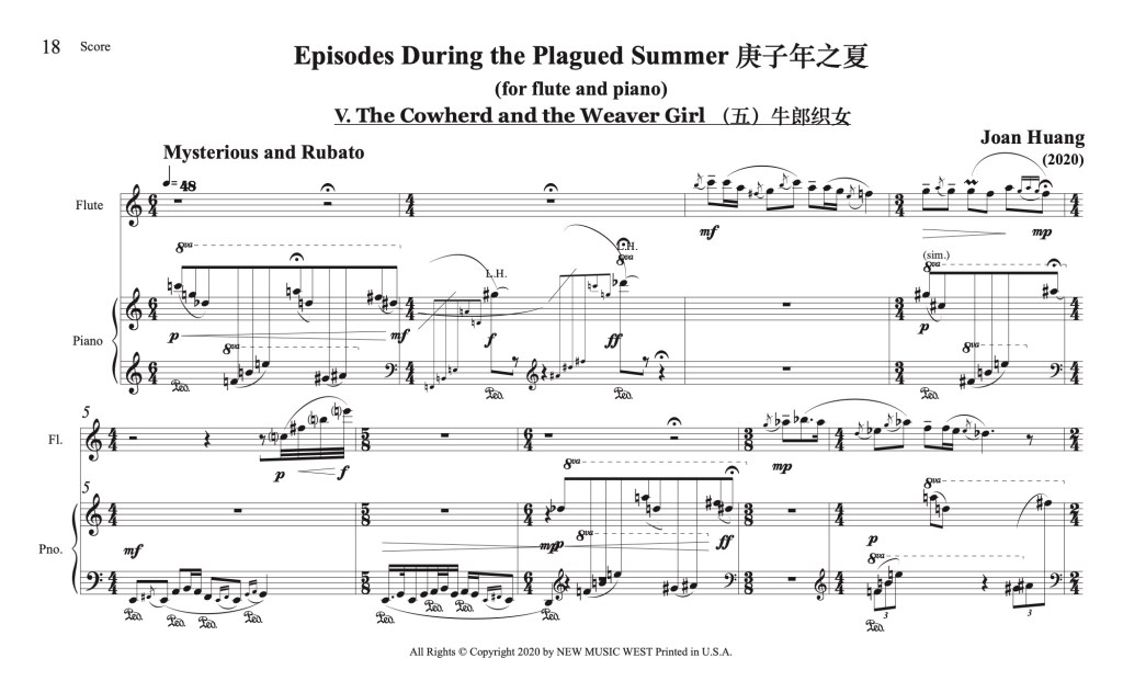 I’m working on a duet for flute and piano, entitled Episodes During the Plagued Summer, here’s the 5th Episodes, named “The Cowherd and the Weaver Girl”: