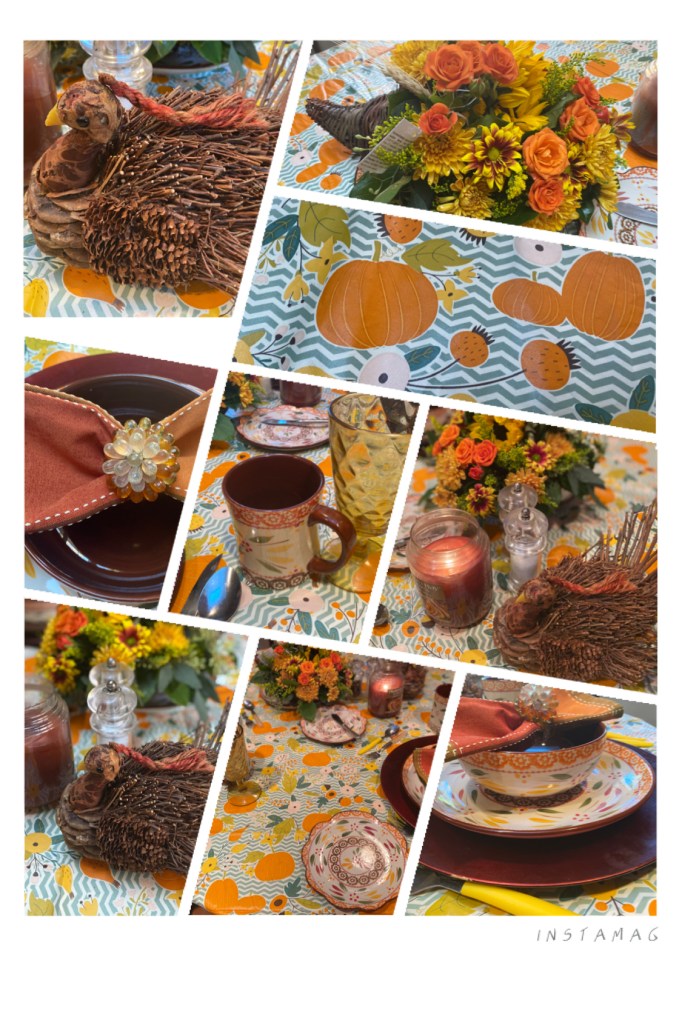 Although I have done various banquets, the Thanksgiving banquet is still a novice. In order to compensate for the lack of reunion with family members on Thanksgiving Day, I purchased beautiful Thanksgiving tablecloth, napkins and chinas for this atypical Thanksgiving Day.