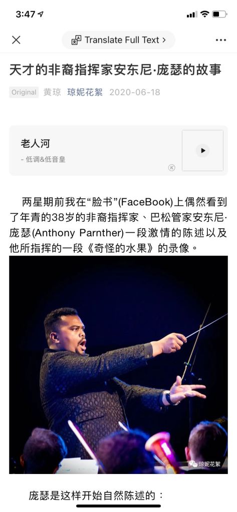 My blog started like this: “Two weeks ago, I came across a passionate statement from the young 38-year-old African-American conductor and Bassoonist Anthony Parnther on Facebook and a video clip of performance Strange Fruit conducted by him.