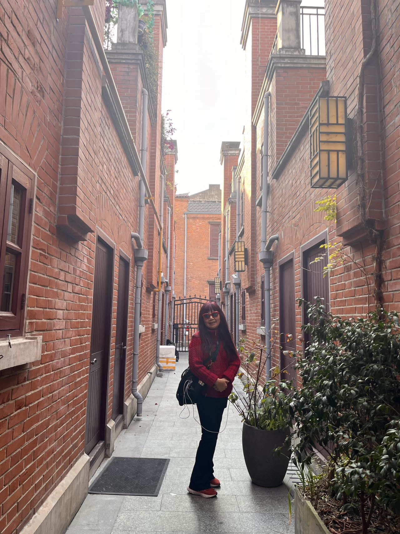 DAY 6: The Wukang Road next to our temporary apartment is one of my favorite streets in Shanghai. It is very charming. Every 10 steps is the former residence of some celebrities in Shanghai. I pushed the wheelchair for my mother and let her fully enjoy all the details of this quaint street. We passed by the former residences of Ba Jin (the writer), Zhao Dan (the movie star), Ke Ling (the writer) and other famous people. Romeo-styled exquisite balconies abound… Small coffee shops and boutiques were decorated to my taste. I bought a hand weaved woolen cloak. We also made a small detour on the way to “Fuyuan”, Alley 20 on Hunan Road, where we lived during our childhood. Across the street there was the original site of the Shanghai Symphony Orchestra. I went there to watch the rehearsals when I was a child.