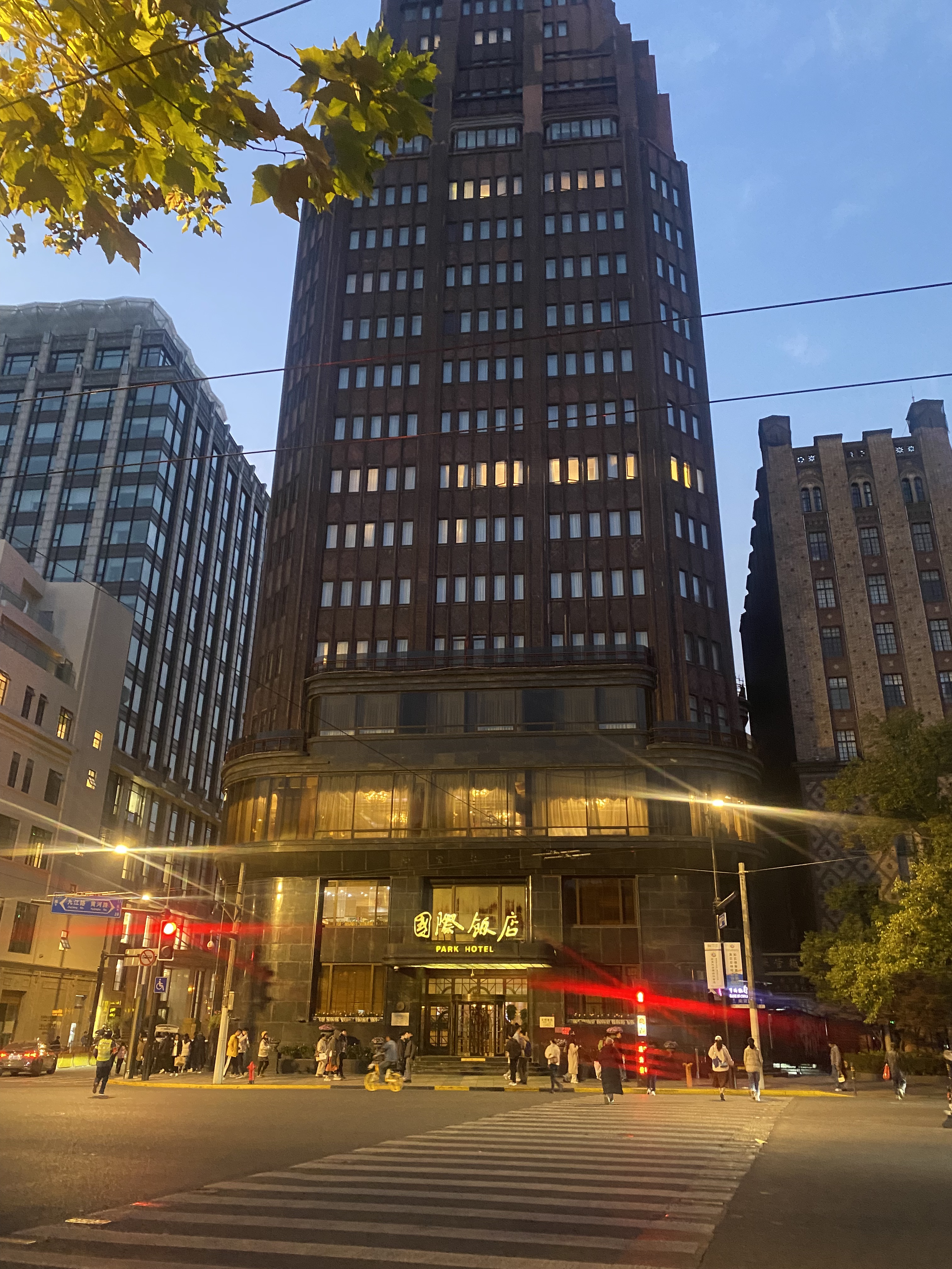 As we walked, the sky got dark, we passed by old ”Lyceum Theatre” and the Jinjiang Hotel (the hotel where Nixon stayed in 1972, the beginning of the establishment of diplomatic relations between China and the United States, and the signing of the famous “Shanghai Comunnique”). Lastly we went the art deco–style “Cathay Cinema” which was one of the first movie theaters in Shanghai. The theater was a favorite of Shanghainese author Eileen Chang.
