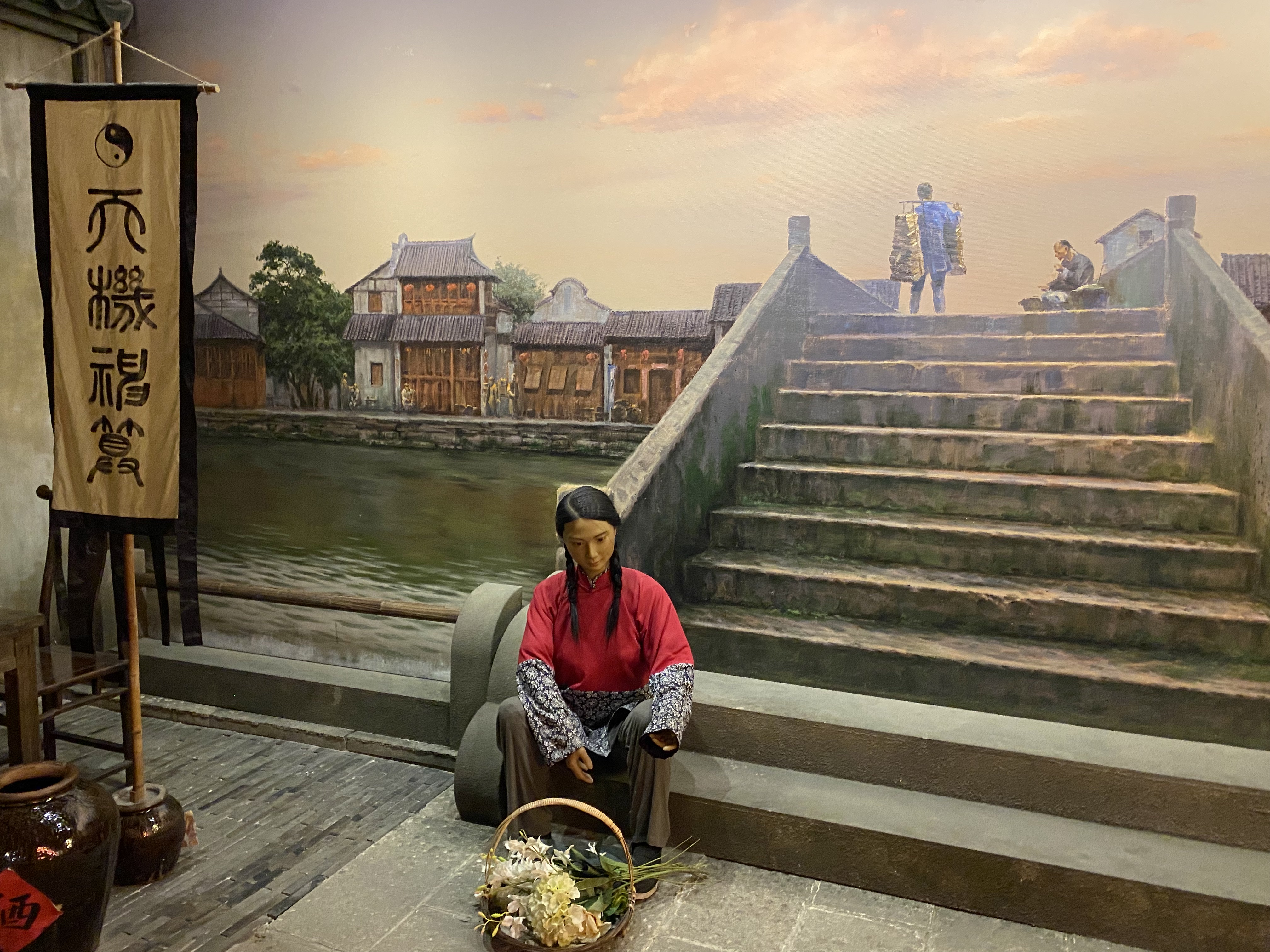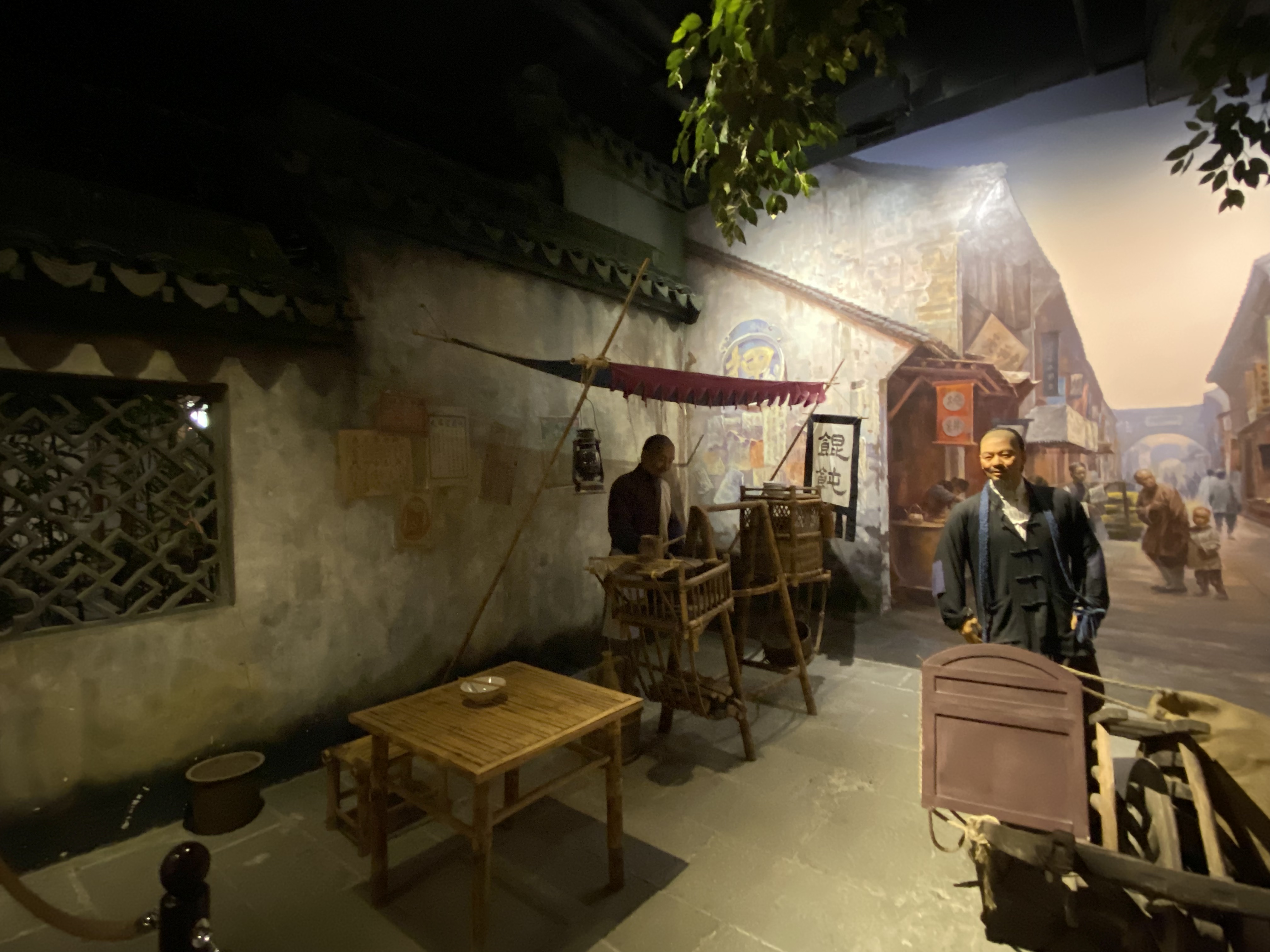 This museum provides the “Roots of Shanghai”. The live sized figures in the history museum vividly portrayed the life of Shanghainese people from ancient to the present. I really fell in love with this exhibition hall in Guangfulin. Shannghai has gone through many vicissitudes. It has just grown from a small fishing village to a prosperous 21st century powerhouse. Accompanied by the tunes of Songjiang opera (the regional opera), you can see the Songjiang cloth at the door of a fabric shop, and you can hear the sound of reading loudly from the school in the distance… The museum also presents life in Shanghai in the last century with “Liushen Perfume”. and “Double Wrigley Hair Scissors” displayed in the glass. The poster of Lushan Love Story (a popular movie in the 1980’s) on the wall felt like yesterday.