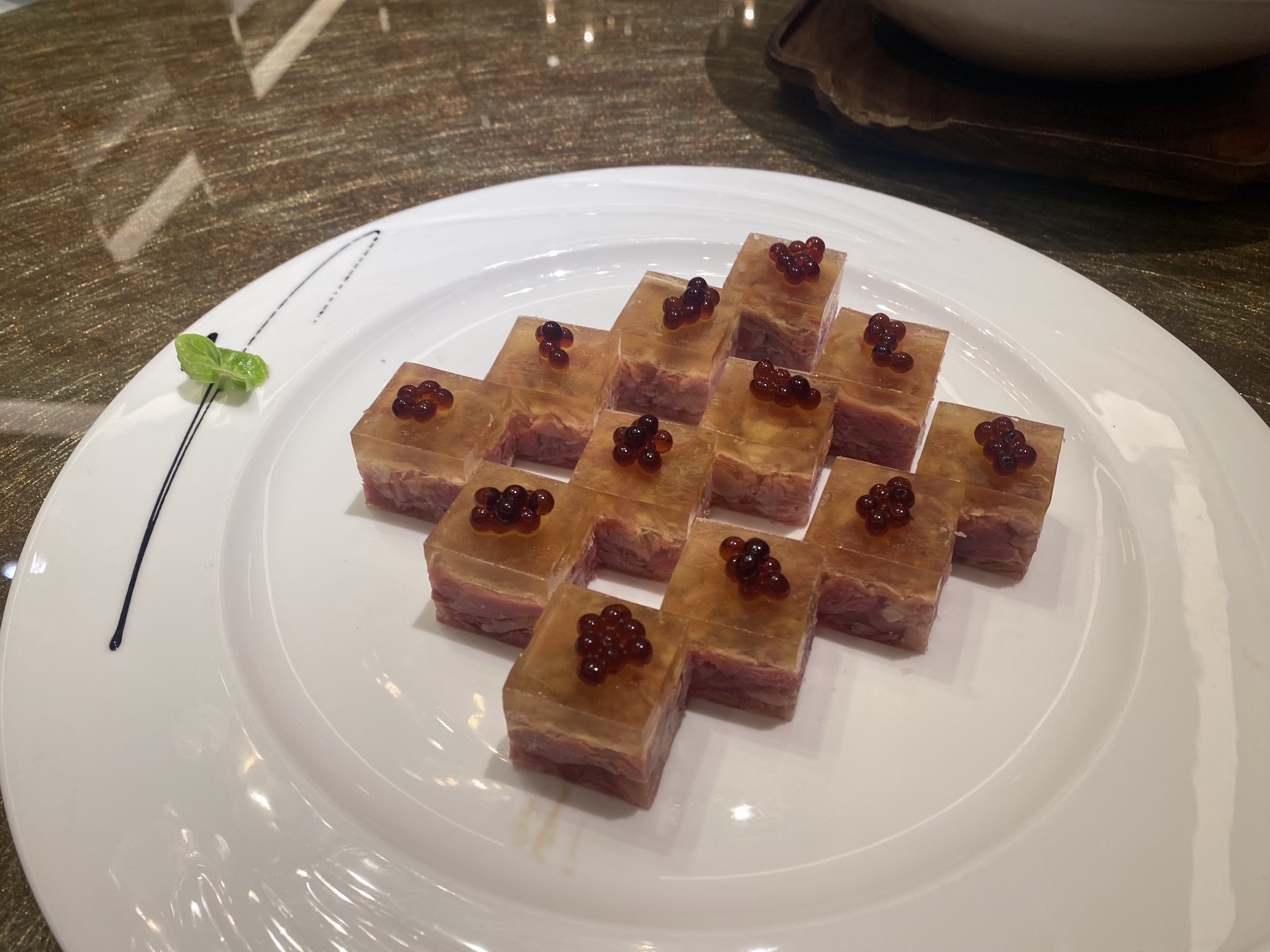 A golden phoenix flew out of the chicken coop! This “Jianyeli” used to be a shabby place when I was a child. We bought our produces from the “Xiao-cai-chang” (the outdoor market) there; we got our soy sauce from spice shop there; and we ate our “Da Bing You Tiao (Chinese scallion pancakes and fried dough sticks) there. Today, it has become a tourist attraction with its “Shi Ku Men” styled architecture. Sharing good memories with our mother at an exquisite Michelin-starred French restaurant…❤️❤️❤️ and letting her feel the difference of this very same location.